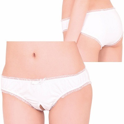 <EROX>ピュアだけど小悪魔?大人の仕掛けが際立つ清楚系レディースショーツ。●純白×コットンのピュアデザイン●ウエスト&足ぐりはフリル縁取り●フロント真ん中にミニリボン付き●安心感のあるフルバックタイプ●クロッチは縦にスリット入り。その名の通りの清純なイメージと優しい肌触りで人気の綿パンツが大変身!大事な部分にスリットを入れて大胆な色気をプラスしたセクシー系オープンショーツ。そのギャップにパートナーもドキドキすること間違いなしです。