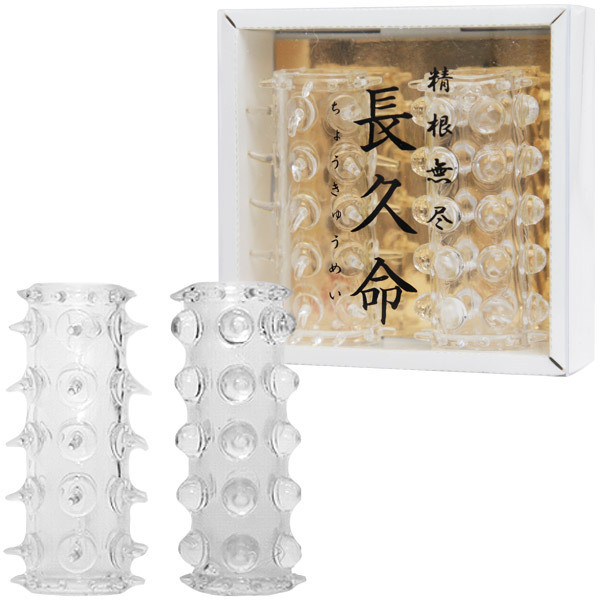 お手軽サックで早漏防止に効果を発揮!「長久命(ちょうきゅうめい)」。長めのサックは装着すると締め付け感も使用感も抜群♪丸型突起タイプと触手タイプの2タイプがセット!気分に合わせて使い分けられる長久命(サック)で、これまで自信のなかった貴方にも長期戦が可能♪ピストン運動をするたびに女性器を刺激し絶頂へと導いてくれます。今までのリングやサックで物足りなかったアナタも長久命(ちょうきゅうめい)でロングプレイを堪能してください! |
