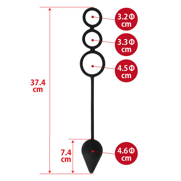 仕様:パッケージ:20.0×13.0×5.5cm 本体:全長:37.3cm 内径小3.1φcm・中3.1φcm・大4.5φcm プラグ部分:7.3×4.6φcm