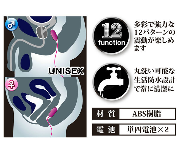 小指サイズでアナルに「するんっ」と挿入♪初心者さんでも安心なアナルローター「ANALhythm(あなりずむ)」。●2.5×1.1cmのマイクロローター●12種の振動でリズミカルに刺激●ON/OFF・振動切替はワンタッチ●丸洗い可能な生活防水で清潔●単四電池×2本使用(別売り)。直径わずか1cmほどの超小型サイズながら、強力振動を生み出すアナルローター。初心者から上級者まで男女兼用で使えるマルチ&ユニセックスなアナルグッズです。