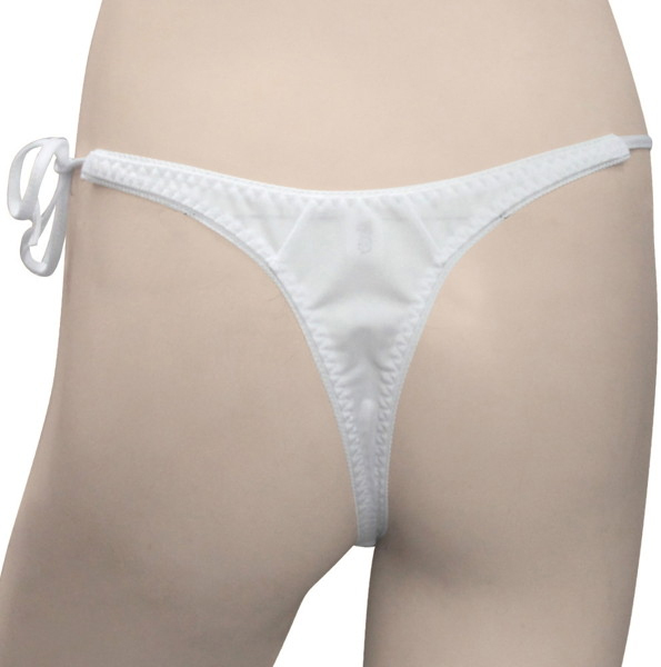 トリコット生地フラワーレース脇紐オープンTバック ホワイト |