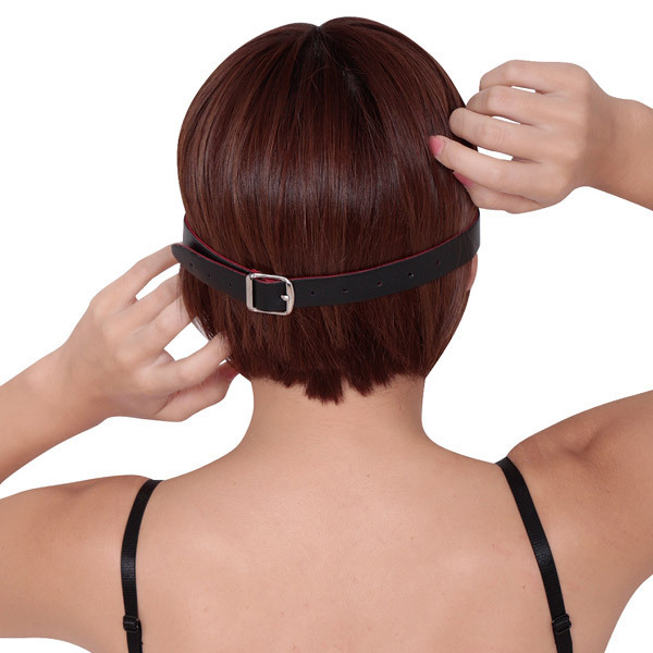 SMプレイの深淵へと導く!赤と黒のフェイクレザーが妖艶な『ABYSS』シリーズのSMグッズ「Abyss(アビス) 厚手二重生地アイマスク」。外側は重厚感のある合皮製、内側は柔らかな生地でクッション性が有るので肌を傷つけず、ロングプレイも安心。材質はフェイクレザー・鉄、サイズ調節可能なベルトの幅は約2cmです。※モデル着用のボンデージ、ストッキング等は付属しておりません。 |