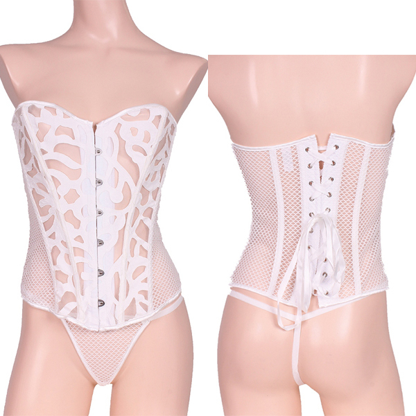 透けてるウエスト&ベストメイクできる流行のスタイルアップコルセットとネットTバックセット。背面はリボンで調整可能、ワイドカバーで背中をきちんと守ります。しなやかに曲がるボーンが内蔵、2種類のネット素材使いでお洒落なデザイン。※こちらの商品は受注発注商品の為、ご注文から発送までに3、4営業日掛かる場合が御座います。