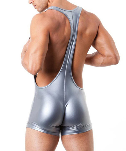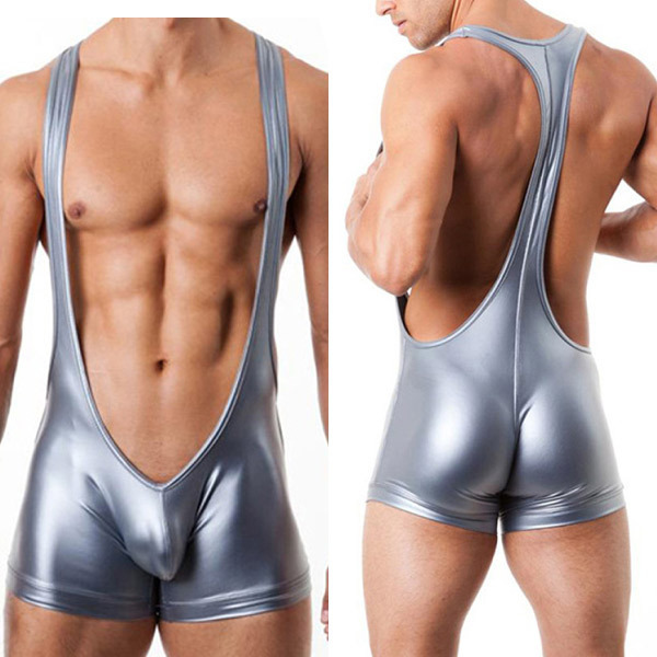 > インパクトある鉄板サスペンダボクサーショーツ シルバー