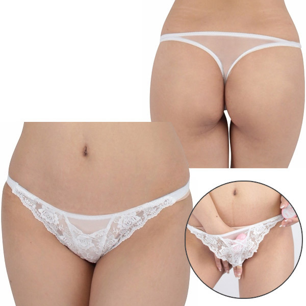 ローターポケット付きフラワーレースシースルーTバック ホワイト |