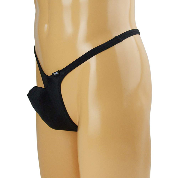 男のシンボルを逞しくセクシーに魅せる上向き縫製の日本製メンズ用Tバック(黒)。伸縮性のある2wayストレッチ生地使用で穿き心地抜群!サオや袋を包み込むようにしっかりと支えつつ、もっこり具合で男らしさをアピール♪ |