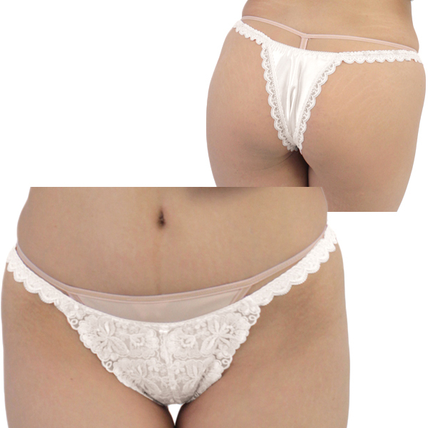 光沢ストレッチレース刺繍ハーフバック (ホワイト) |