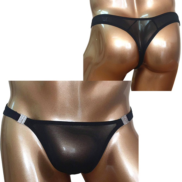 極薄の透け素材を使用したセクシーなメンズ用ビキニパンツ(黒)。肌触り滑らかな伸縮性のあるレース生地が下半身に優しくフィット!男の色気を際立たせます♪洗濯の際は優しく手洗い、または網ネットに入れて洗濯してください。 |