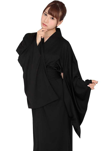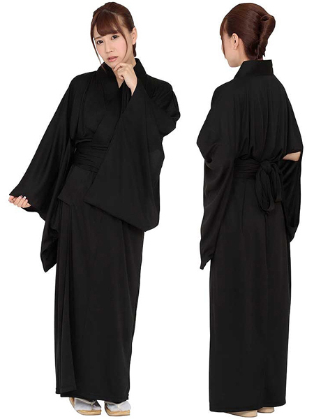 着るだけで哀愁漂う未亡人になりきれる和装コスチューム。黒の着物と同色の帯紐のセット!ハロウィン仮装にも最適な着物コスプレ。