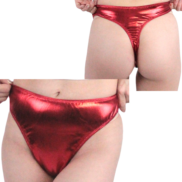 伸縮性抜群!重厚な光沢を放つレッドカラーの日本製Tバック。ストレッチ性のあるメタリック生地を使用!ダンス衣装やコスプレ衣装のインナーに◎Mサイズ |
