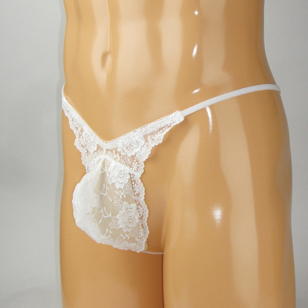HOME> 下着 > 男性用ショーツ・ビキニ > メンズ スケスケシースルーレース付き脇細Gスト ホワイト L
