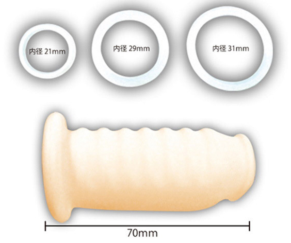 仕様:パッケージ:19.5×12.3×4.0cm 本体:スリーブ全長7.0cm・リング内径(小2.1cm・中2.9cm・大3.1cm)
