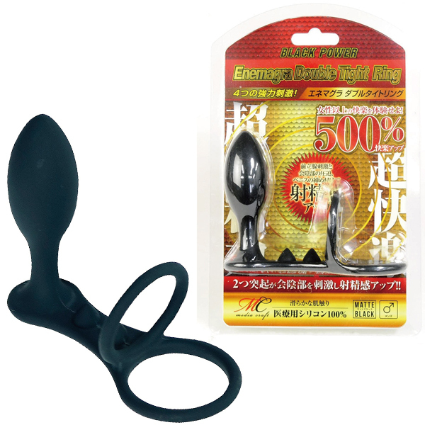 いつもの射精感をアップさせてくれる力強い補助グッズがこちら!前立腺刺激と会陰部の圧迫、そしてペニス部分の締め付けにより射精感を劇的にアップさせてくれる「エネマグラ (ダブルタイトリング)」です。高品質な医療用シリコン素材を100%使用しているので使い心地は抜群!2つの突起が会陰部を刺激し、サオの根本、睾丸部分、会陰部、前立腺の4か所からなる締め上げられた各部位を、同時に刺激し快感を増幅させてくれます。いつも以上にセックスを楽しみたいときや普段のオナニーにもぜひお使い下さい。コックリングとアナルプラグがミックスされているので、滑らかな挿入感とともに抜群の快感をお楽しみ頂けますよ♪