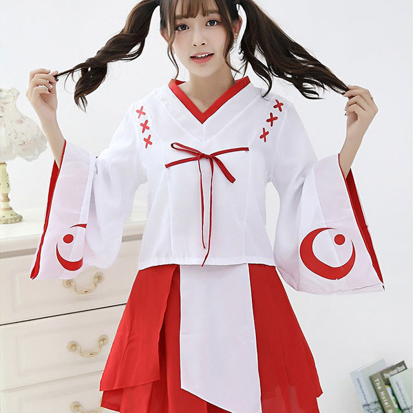 アニメ風の個性的なデザインが特徴的な巫女服衣装。袴風のミニ丈プリーツスカートと白衣の赤いリボンがとってもフェミニン♪振袖部分の月模様がミステリアスな印象を与える巫女風コスプレ。舞台衣裳やハロウィン仮装、アニメ系イベントのコスチュームとしても◎※こちらの商品は受注発注商品の為、ご注文から発送までに3、4営業日掛かる場合が御座います。 |