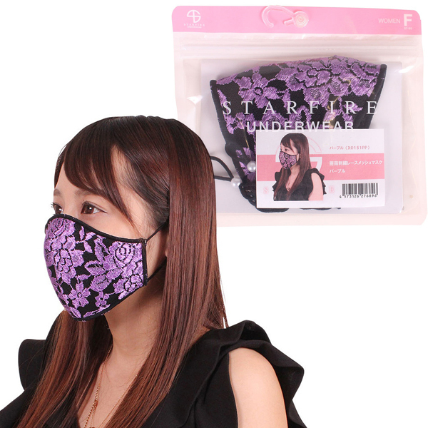 薔薇刺繍レースメッシュマスク パープル |