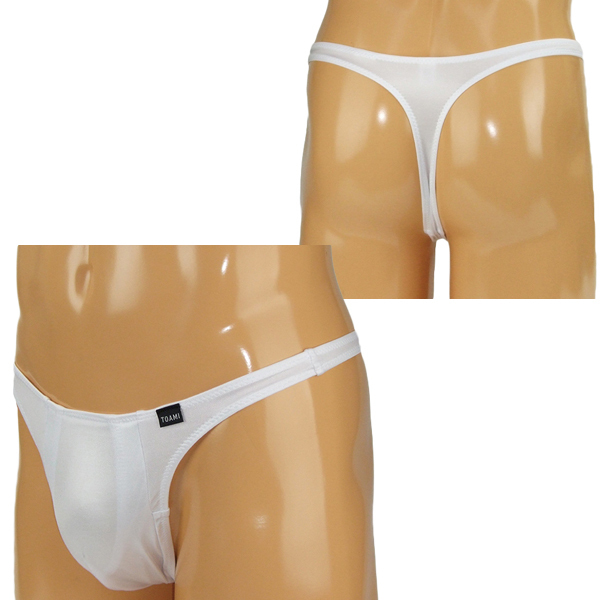 > メンズ 光沢ストレッチ生地玉袋付きTバック Mホワイト