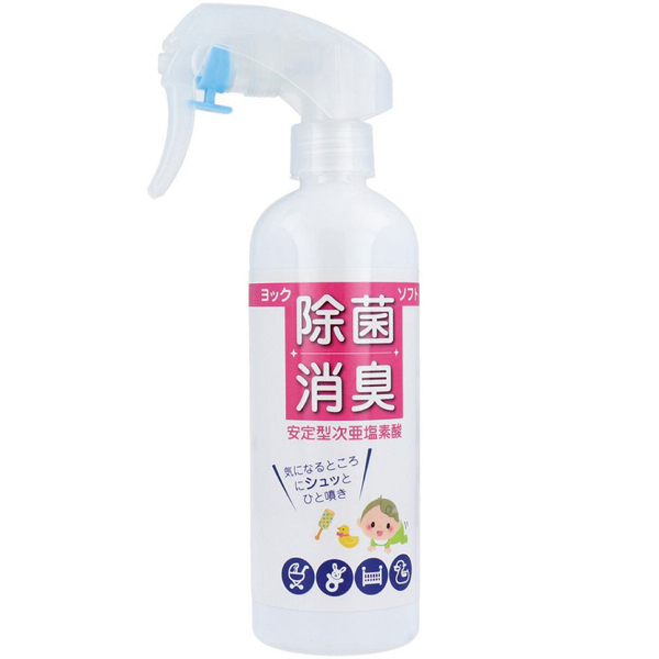哺乳瓶やおむつ交換などを手軽に除菌&消臭!子ども用品にも安心なソフトタイプの除菌スプレー300ml。ウイルスや細菌の除去&除菌ほか、嫌な臭いもこれ一本♪気になる場所へシュッと一吹きするだけ簡単衛生管理!ご家庭や医療、教育、介護現場など毎日の予防に◎安定型次亜塩素酸ナトリウムを純水で希釈した濃度調整済の除菌消臭スプレー。 |