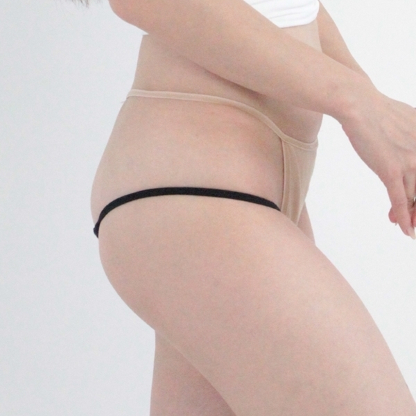しっとりとしたエナメル生地の脇細極小ハーフバック ブラック |