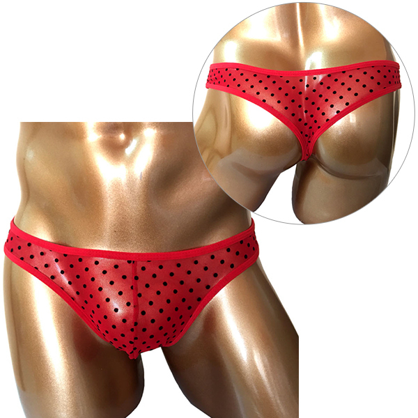他とは差をつけたいメンズアイテムならコチラ!バッドダディブランドから情熱的な赤いシースルー生地のワイルドビキニパンツが新登場♪すいかの種のような水玉ドットがキュートさを演出します。 |