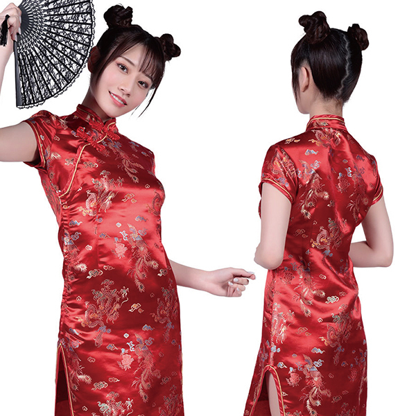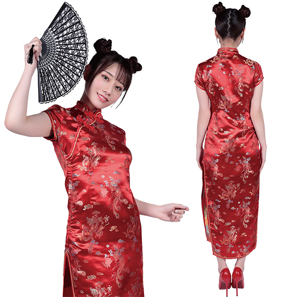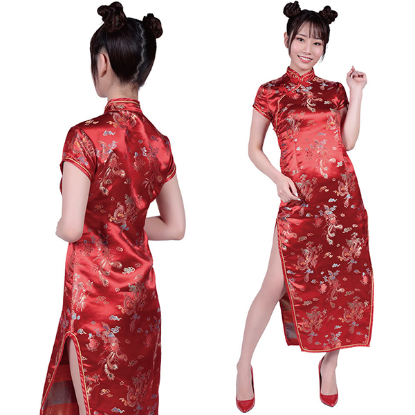 ロングのスリットからチラリと覗く美脚が魅力的なチャイナコスチュームです♪本格的なチャイナ・ガールに変身できるデザインで、長めのスリットが妖艶な雰囲気を演出!タイトなシルエットでボディラインもしっかりアピールでき、両サイドの長いスリットが脚を綺麗に魅せつつドレスの中も想像させるデザインとなっています♪襟元も生地の柄も伝統的なチャイナっぽさを踏襲した秀逸なデザインとなっています。 |