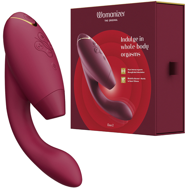<吸引・震動/USB充電式>挿入と吸引が同時にできる大人気のウーマナイザーDUOがDUO2に進化!吸引振動の強弱段階は12段階から14段階へパワーアップ。さらにクラシック2の限定機能だった「アフターグロー機能」を搭載。オーガズムの際、電源ボタンを短く押すことで吸引も挿入部の振動も最弱の振動となり、余韻を楽しむことができます。●カラー:ボルドー※こちらの商品は受注発注商品の為、ご注文から発送までに3、4営業日掛かる場合が御座います。 |