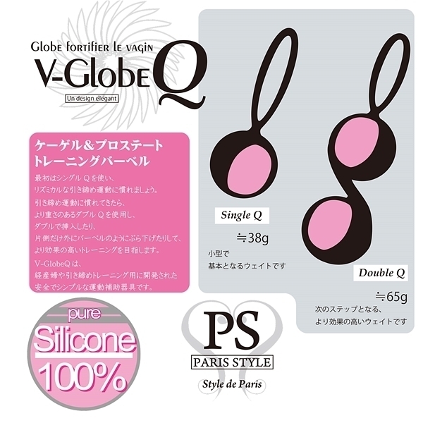 内部の筋力を高めて快感の頂点へと導くトレーニンググッズです♪動くとボールの振動が内部に響いて、心地良い刺激が全身を駆け抜ける!医療用シリコンを採用しているので安心してプレイがお楽しみいただけます♪最初はシングルQを使い、リズミカルな引き締め運動に慣れたらより重さのあるダブルQを使用!ダブルで挿入したり片側だけ外にバーベルのようにぶら下げたりして、より効果の高いトレーニングを実践していただけます。V−GlobeQは、経産婦や引き締めトレーニング用に開発された安全でシンプルな運動補助器具です。 |