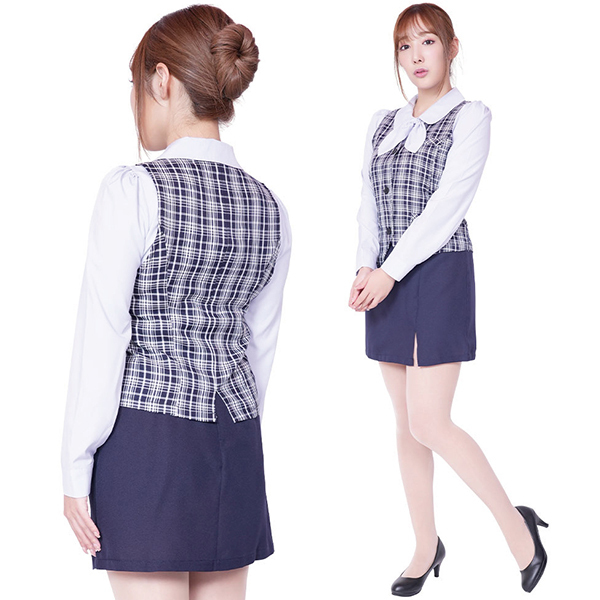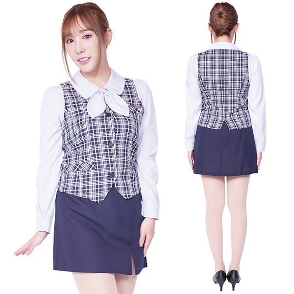 仕様:B75〜85cm・W58〜67cm・着丈58cm・肩幅38cm・袖丈58cm・スカート丈40cm セット内容:長袖ブラウス、ベスト、スカート、リボンタイ