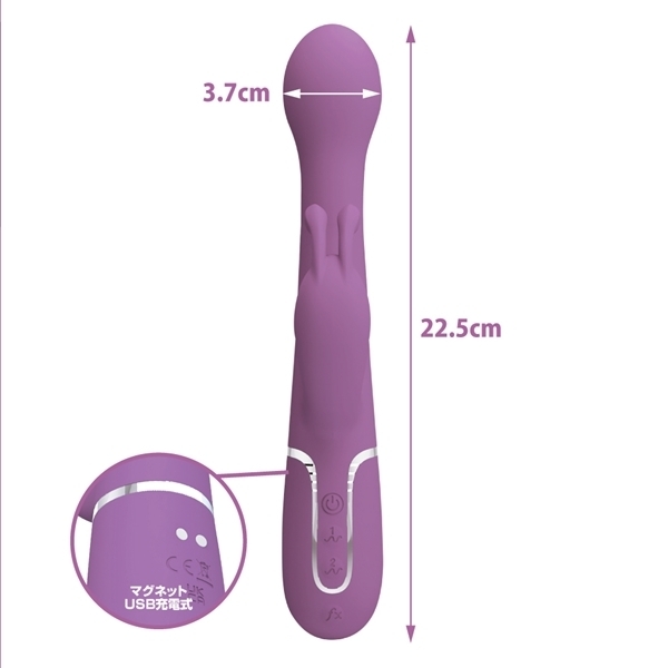 振動・回転・ピストン機能を搭載した高性能バイブレーターです♪マグネットUSB充電式で、7パターンのバイブレーション、4パターンのスラスティング、4パターンのローテーション機能を楽しめます!外と中から同時に快感を与える強力なクリバイブ付きです♪高品質な医療用シリコンを使用し、生活防水設計で快適に使用できます!クライマックスバーストボタンで一気に刺激を高めます♪ |