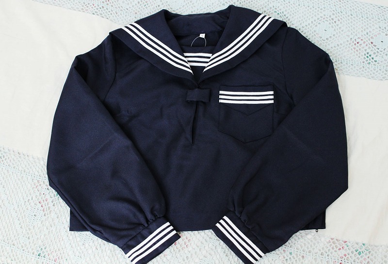 仕様:Mサイズ:B78〜94cm 丈:上衣46cm(袖丈54cm、肩幅39cm) セット内容:冬服セーラー上衣単品(サイドファスナー、胸当て取り外し可)