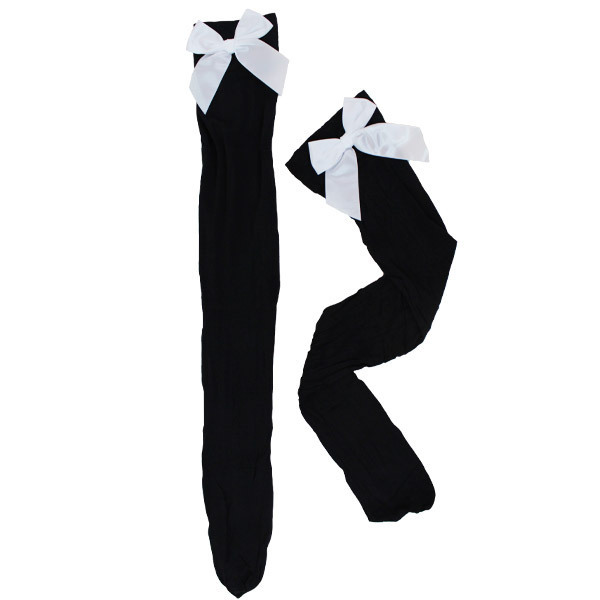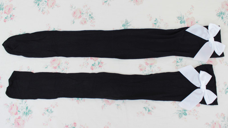 HOME> 衣装・コスチューム > 小物(猫耳カチューシャ・ニーソ) > リボン付きニーハイ 黒×白リボン