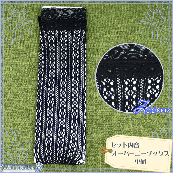 HOME> 衣装・コスチューム > 小物(猫耳カチューシャ・ニーソ) > レース付き花柄メッシュニーハイソックス 黒 140〜160cm