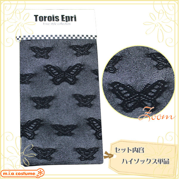 HOME> 衣装・コスチューム > 小物(猫耳カチューシャ・ニーソ) > 蝶柄ハイソックス 黒 フリーサイズ