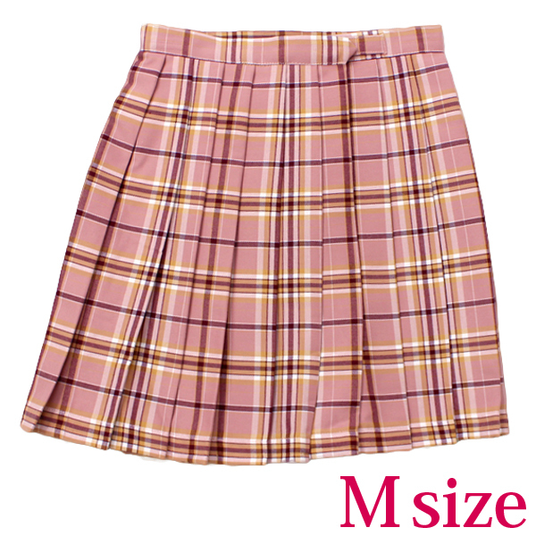 ポケット付きのチェック柄プリーツスカート単品 ピンク×キャメル Mサイズ |