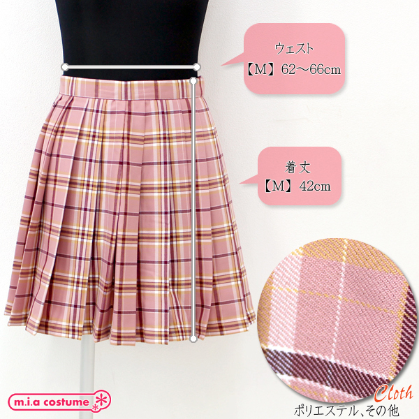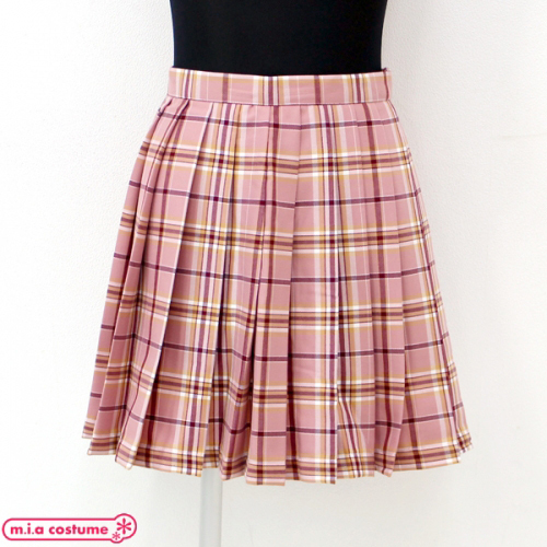 HOME> 衣装・コスチューム > 小物(猫耳カチューシャ・ニーソ) > ポケット付きのチェック柄プリーツスカート単品 ピンク×キャメル Mサイズ
