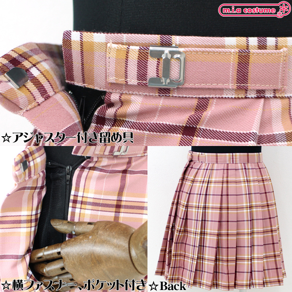 自分流にアレンジして制服コーデを楽しもう!ピンク×キャメルの可愛いチェック柄プリーツスカート単品。ウエスト調節可能なアジャスター付き留め具付きで、サイドには横ファスナーとポケットが付いた機能性抜群の本格派デザイン♪現役学生さんのコーデアイテムとして、コスプレ衣装や制服コスと合わせても可愛い!※色落ちの可能性があるので水洗い&塩素系漂白剤による漂白は不可※水洗い不可、塩素系漂白剤による漂白不可、色落ちの可能性があります。※こちらの商品は在庫の状況によりお届けまでに4日〜7日程度かかる場合がございます。 |