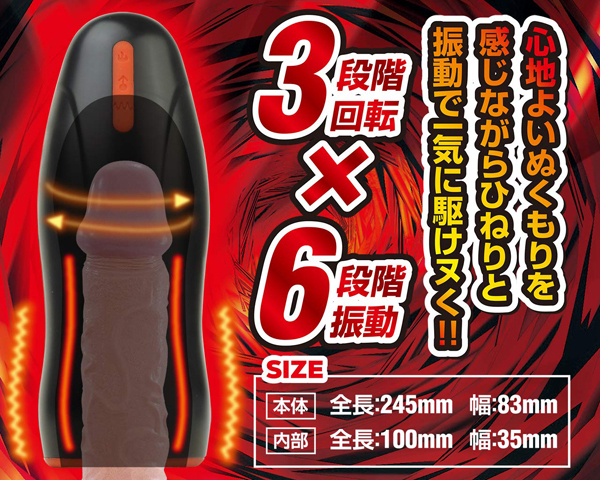 膣のぬくもり×内部のうねり×全体へ伝わる振動…女性器で感じることのできる感覚をすべて兼ね備えたホットトルネードが、電動オナホールに嵐を巻き起こす!!オナマシーンはここまで来た!!電源を入れて挿入すれば、ボタンを押すだけで快楽へ導く刺激を楽しめる。心地よいぬくもりを感じながら、ひねりと振動で一気に駆けヌケろ!!【ホットモード】ボタンを押せば、熱が約40度まで上昇。膣内のぬくもりを楽しめる。【回転モード】3パターンの回転で、膣の内部のうねりを楽しめる。【振動モード】6パターンの振動で、女性が絶頂に達する際の震えを楽しめる。USB充電式・生活防水 |