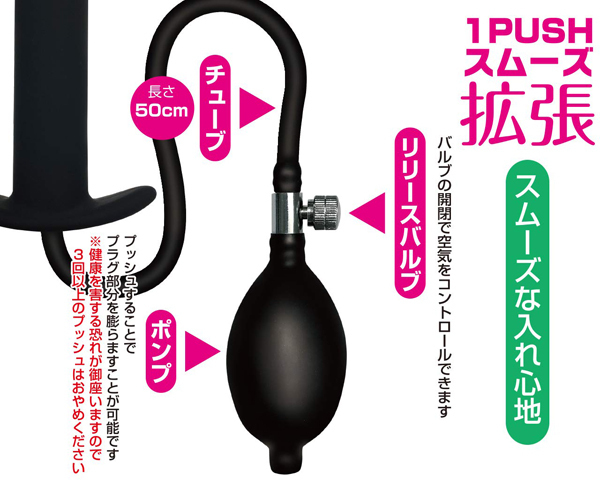 内部で膨らむ拡張プラグ。プラグを挿入しポンプで空気圧をコントロール!プラグは取り外せるので丸洗いも可能。ライトタイプは無理なくスムーズに挿入できる形状で内部を拡張しながら全体が満たされる感覚を愉しもう!●丸洗いOK●滑らかな挿入感※健康を害する恐れが御座いますので3回以上のプッシュはおやめください。