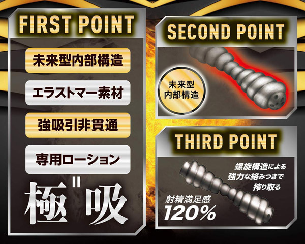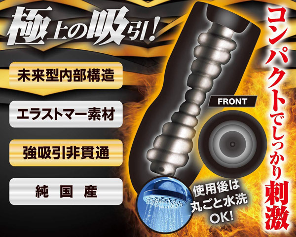 射精満足感120%!!小型ホールのポテンシャルを超越した未来型内部構造を搭載。強吸引の刺激がマッハで射精を促す!螺旋構造によるヒダが生み出す極上の吸引で亀頭にしっかり絡みつき搾り取る。●専用ローション付き●使用後は丸ごと水洗いOK! |