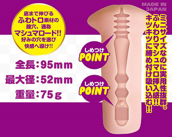 刺激系・緩穴系・狭穴系、3つの異なる内部形状を、ふわトロ素材で手軽に楽しめるミニオナホの決定版!底まで伸びるふわトロ素材の膣穴、通称『マシュマロード』射精感抜群な好みの穴を選び快感へ導け!最も狭穴のアユミはキュっと締まった膣道で竿全体を絞り上げて奥まで吸い込み射精を促す!●高品質な純国産●非貫通タイプ●専用ローション付き |