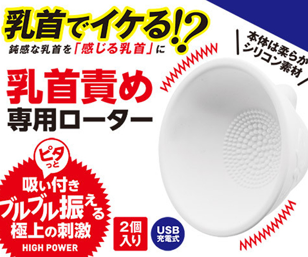 鈍感乳首からイケる乳首へ!柔らかシリコン素材を使用したUSB充電式の吸盤カップ型ローター。乳房へピッタリ吸着!10種類の強力振動がカップを通じて乳首へブルブルと伝達、鈍感だった身体も次第に感じる身体へ♪お風呂で使える生活防水仕様、ハンズフリーで楽しめる乳首責め専用ローターです。30分の充電で約60分間使用可能 |
