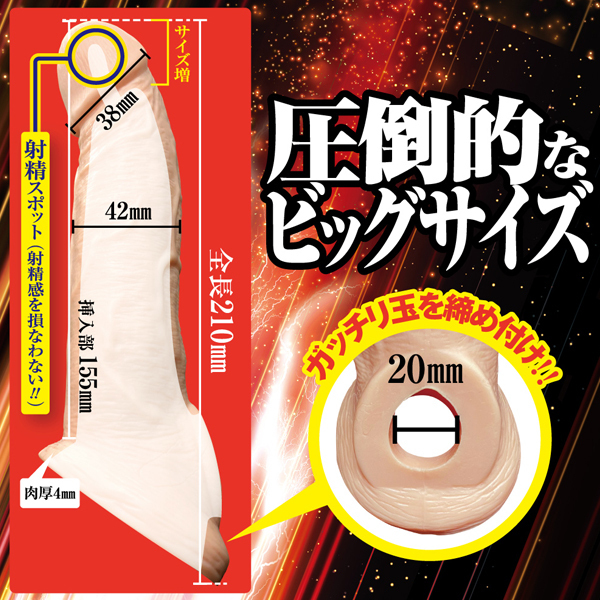 仕様:パッケージ:22.5×7.0×7.0cm 本体:全長21.0cm・挿入部15.5×最大径4.2cm・カリ径3.8cm・タマ装着穴2.0cm