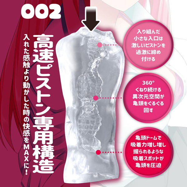 高速ピストン専用構造!入れた感触より動かした時の快感をMAXに感じられる非貫通オナホール。亀頭ドームで吸着力を増し、握られる様な圧迫感がたまらない!ハリのある弾力がぷるんぷるん感覚!クセになるぱっくん吸着力でイカしてくれる!キツキツ感がお好みの方は「スキです!オナホ大好きですっ。あなタイプ001(e26867)」もオススメです♪
