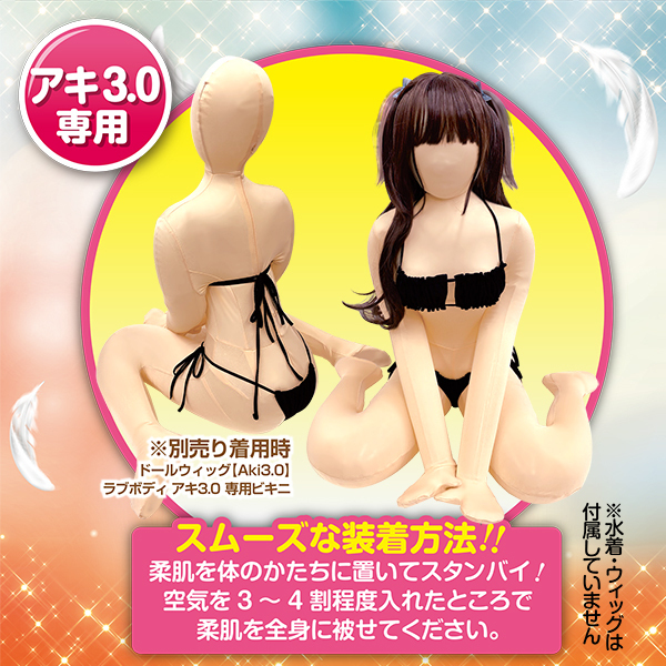 アキ3.0をさらに楽しめるアイテムとして同時発売!透明のアキ3.0に体温(ぬくもり)を注ぎ込む!『ラブボディ アキ3.0』から採寸したからジャストフィットサイズ!ちょっぴり成長したアキのボディラインも美しく容どります。ホール用に穴もあり、ラブボディ本来の使用感を崩しません。汚れても丸洗いでき、お手入れも安心。【スムーズな装着方法】柔肌を体のかたちに置いてスタンバイ!空気を3〜4割程度入れたところで柔肌を全身に被せてください。※ボディ本体、ウィッグ、コスチュームは別売りです。