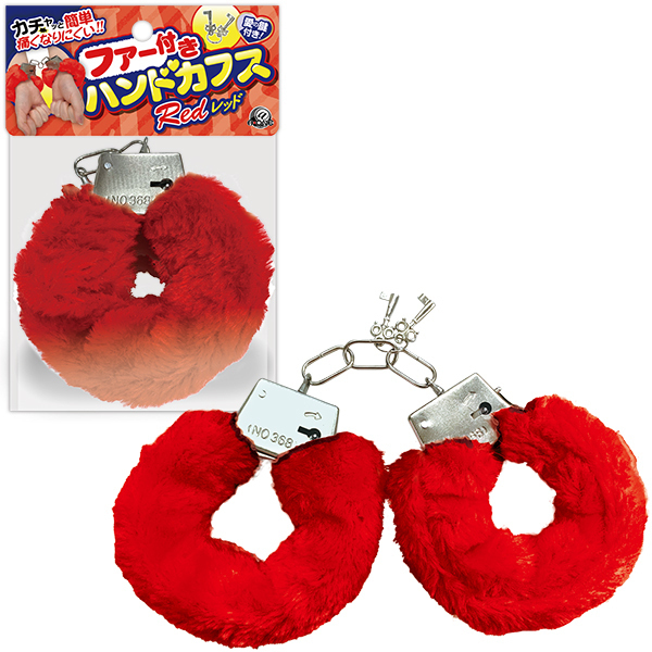 オシャレにソフトSMしてみない?かわいいファー付きの手枷が、定番の4カラーで同時発売!もちろん、プレイが盛り上がる鍵も付属♪ァー付きだから、長時間でも痛くなりにくい!!カチカチッとスライドさせれば簡単に拘束調整ができ、鍵を万が一なくしても解除できる安全レバー付き!プレイだけでなく、普段のちょっとしたファッションにプラスしてもカワイイ♪情熱的なレッドでプレイする?