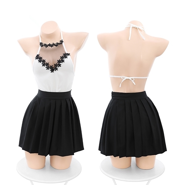 エプロンをモチーフにしたラブリーなデザインが特徴のベビードールです♪白と黒のコントラストにお花のデザインが加わり、シンプルながらも優雅な印象を与えます!デコルテや背中が見えるデザインで、上品さと可愛らしさを兼ね備えたスタイル♪スカート部分は面ファスナーで調節可能で、フィット感も自由に調整できます!お花モチーフのデザインが良妻感を演出し、羽織物との相性も抜群♪特別な日にも日常使いにもぴったりのアイテムで、清楚な魅力を引き立てる一着です! |