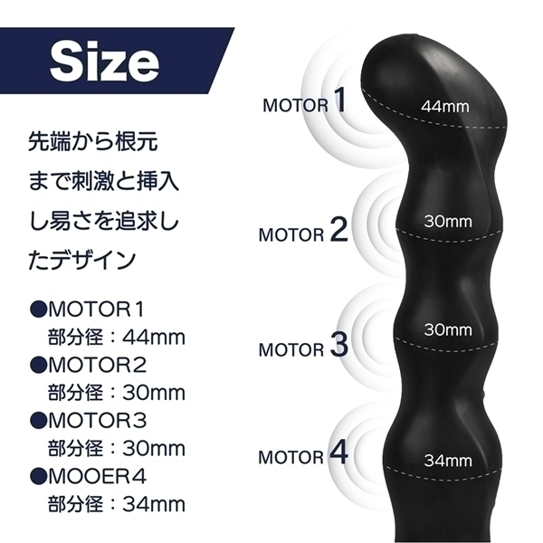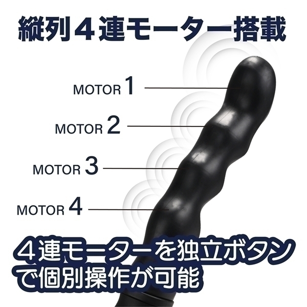4つのモーターを搭載した高機能モデルです♪先端から根元までそれぞれ独立して操作できる設計で、お好みに合わせたカスタマイズが楽しめます!3段階の振動強弱と5種類のパターン振動を組み合わせて、自由自在に設定可能です♪先端だけハイパワーにして、根元はリズミカルな動きにするなど、多彩なバリエーションを体感できます!さらに特別なCLIMAXボタンを搭載し、全モーターを一斉に振動させたり、順番に波打つような動きを選べます♪表面素材には、リアルなやわらかさと滑らかな肌ざわりを再現した特殊TPE素材を採用!約60分の充電で、最大90分の長時間使用も可能です♪ |