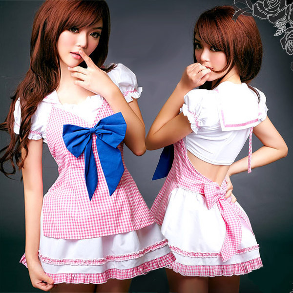 セーラー服とメイド服の最強コラボ!乙女心も男性のハートも掴んじゃうメイドコスチューム。●白×ピンクのセーラーワンピース●背中部分はソフトな伸縮素材●後ろから見るとセパレートになるドキドキ仕様●ギンガムチェック×青いリボンのキャミ風エプロン●ホルターネックとウエストを後ろで結ぶフリーサイズ。キャミソール単体でセクシーに、ワンピース単体でシンプルに、二つあわせて最強コーデにと3WAY楽しめる嬉しい仕掛け!前と後ろで印象がガラリと変わるセーラー風メイド服です。※製造時期により材質・レースの柄等が異なる場合がございます。※サイズ表記は実寸となりますので、生地の伸縮等により若干の誤差があります。 |