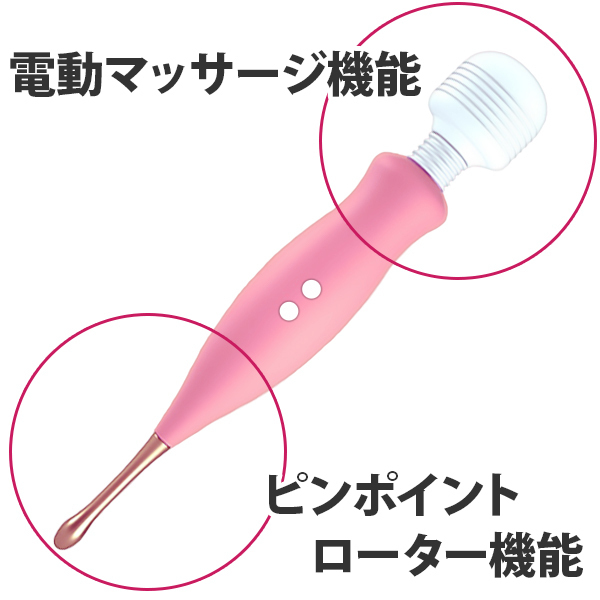 通常では味わえない快感が味わえる!クリトリスを責めるのが好きな人にぴったりの「電マ+ピンポイントローター」です。これまでのクリトリス攻め系グッズに飽きた方に!これ一本でクリトリスを存分に気持ちよく刺激♪クリを刺激するセルフプレジャーアイテムは数多くありますが、電マのようなコンパクトさと利便性、そしてピンポイントで刺激してくれる機能性を兼ね備えた高品質なローターバイブレーターです。クリをピンポイントで刺激するも良し!もちろんクリも含めて周りを刺激するも良し。これまでにない新たな快感をこのグッズで楽しむことができますよ♪※電源のボタンは別れており、ボタンを2秒間長押しする事で電源のonとoffを切り替えられ、電源onの状態でボタンを押すごとにパターンを変更できます。 |