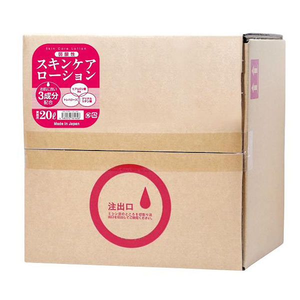 敏感肌や女性に嬉しい弱酸性のスキンケアローション20L。ヒアルロン酸やトレハロース、グリチルリチン酸といった3種類の保湿成分を配合!レジャー施設や風俗店に最適な大容量サイズ。詰め替え用としてもお使いいただけます♪※大型商品の為、送料が別途必要になります |
