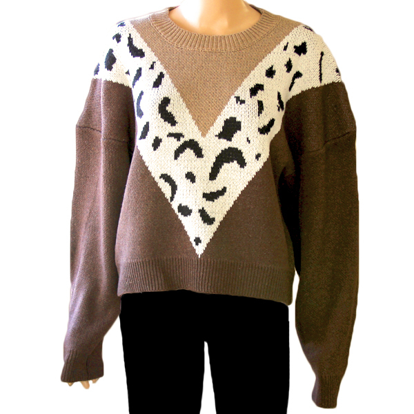 HOME> 衣装・コスチューム > その他 > V字ラインのヒョウ柄ニットセーター Mサイズ ブラウン